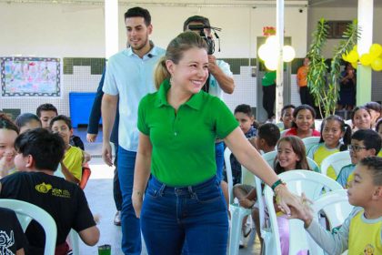 Flávia e Tião entregam novos uniformes para alunos da rede municipal