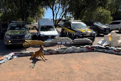 Operação integrada do Gefron e PRF apreende 280 quilos de drogas com auxílio de cão farejador