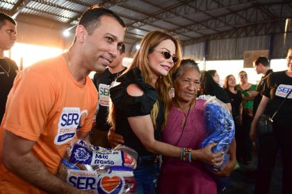 Primeira-dama de MT entrega cestas de alimentos, cobertores e brinquedos durante Mutirão da Cidadania