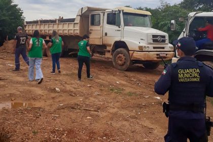 Guarda Municipal flagra caminhão despejando entulhos em área de APP Várzea Grande