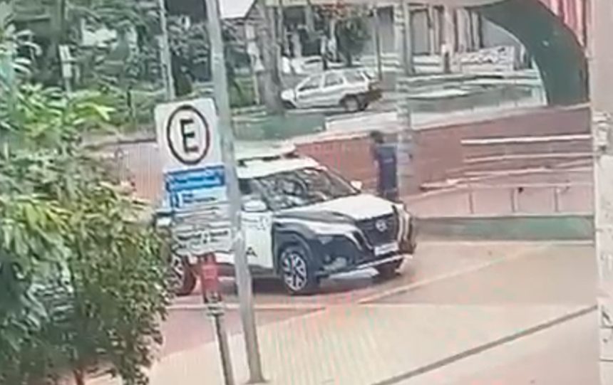 Joel foi encontrado morto no porta-malas da viatura policial. Imagens das câmeras de monitoramento do programa Vigia Mais MT mostram que o homem entrou sozinho e se trancou no veículo, no sábado (4), que estava estacionado na Praça Alencastro.
