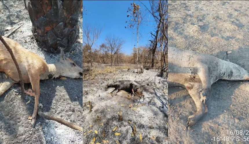 Ainda de acordo com o comandante, nem todos os animais morreram queimados, mas sim pelo efeito do fogo.