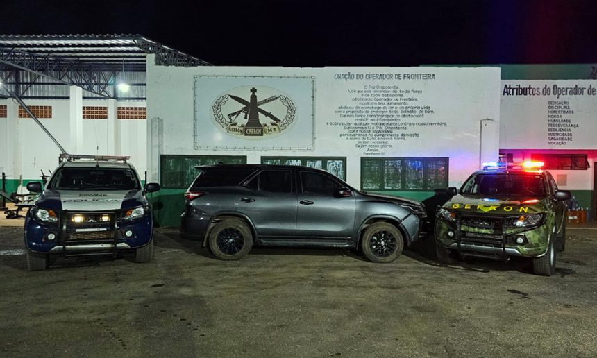 Dois homens, de 31 e 18 anos, foram presos em flagrante na madrugada desta quarta-feira (31.07), no município de Porto Esperidião (326 km de Cuiabá), tentando seguir para a fronteira com a Bolívia levando uma caminhonete Hillux SW4 roubada sobre um caminhão guincho.