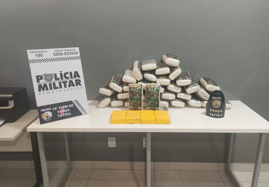 Policiais militares da Força Tática do 2º Comando Regional prenderam dois homens, de 51 e 38 anos, por tráfico ilícito de drogas, na manhã desta segunda-feira (30.09), em Várzea Grande. Na ação, foram apreendidos 39 tabletes de drogas, entre substâncias análogas à supermaconha e cloridrato de cocaína.