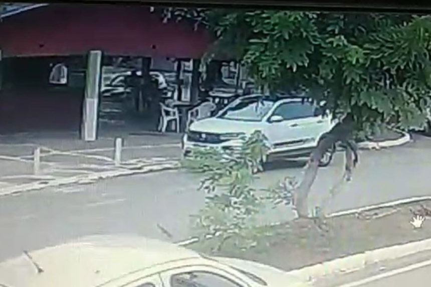 O crime ocorreu no bar Tetra Barsil. Nas imagens, Florentino e o sobrinho aparecem atrás de um carro branco.