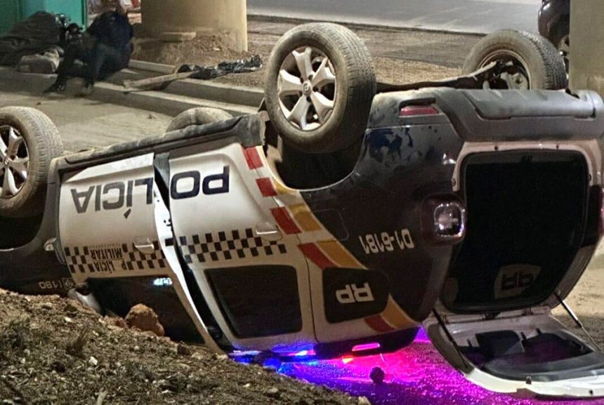 O capotamento de uma viatura da Polícia Militar foi registrado, ontem à noite, na avenida dos Imigrantes, em Várzea Grande. Ninguém ficou ferido. O automóvel ficou com as rodas para cima e parcialmente danificada.