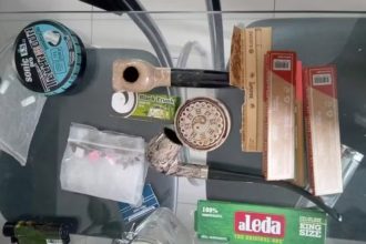 Como resultado da ação, foram apreendidos 20 aparelhos celulares, 15 carregadores completos, 17 chips, um carregador portátil, 10 porções de cocaína de diversos tamanhos e uma balança de precisão.