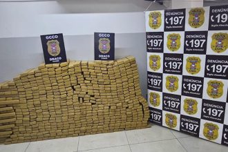 Os policiais foram até o local apontado como centro de distribuição e encontraram caixas de papelão na porta da casa. Eles ficaram observando o local até verem um homem se aproximar e sair com um dos pacotes. Ele foi abordado e estava com uma cesta básica.