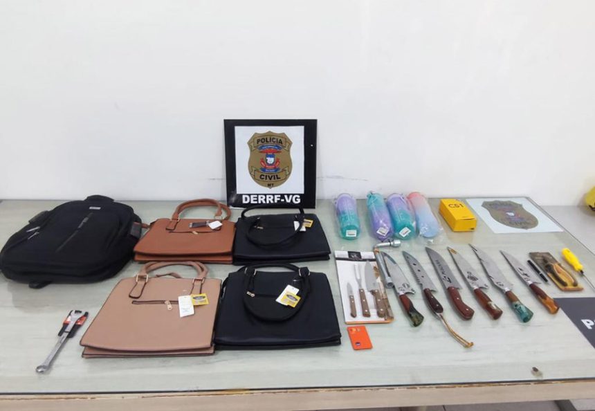 Após negociação dos produtos pela internet, os policiais da Derf-VG se deslocaram até o endereço e foram recebidos pela mulher, que alegou estar fazendo o atendimento em nome do seu companheiro. No local, foram encontrados diversos objetos oriundos de furtos, dentre eles objetos furtados da loja da vítima. Ela foi presa, conduzida para delegacia, interrogada e autuada em flagrante.