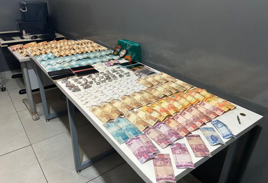Com os suspeitos, a PM encontrou uma bolsa contendo 46 porções de cocaína e 45 porções de maconha. Em seguida, os policiais entraram em uma residência, onde os criminosos atuavam, e localizaram a quantia de R$ 1.346,00 em dinheiro.