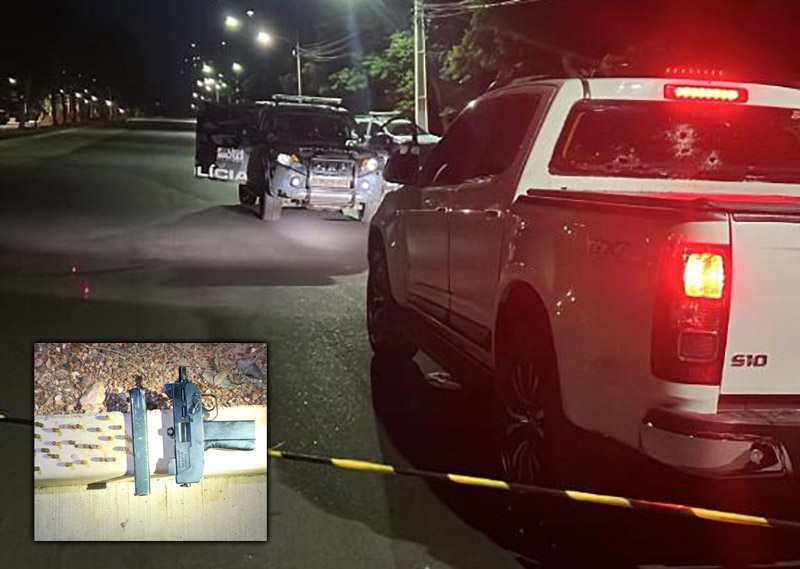 Ao darem ordens de parada e iniciarem a abordagem, os policiais foram recebidos com tiros vindos de dentro da caminhonete, que chegaram a atingir a viatura da equipe militar.