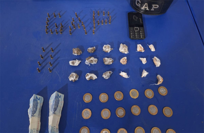 À PM, o idoso confessou que havia mais entorpecentes dentro da casa. As drogas foram localizadas em cima de um armário. No local, as equipes encontraram, ainda, diversas munições, um aparelho celular e R$ 25. O suspeito alegou que vendia drogas a mando de uma facção criminosa.