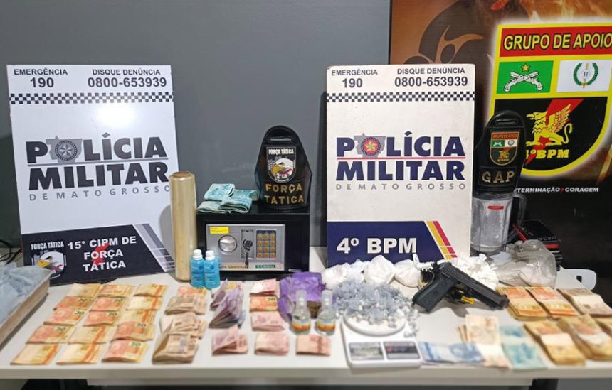 Com o outro suspeito, localizado no interior da residência, foram encontradas mais 10 porções de pasta base, uma sacola com outras substâncias como ácido bórico e uma quantia de R$ 5 mil. Em relato aos policiais, o homem confessou possuir mais entorpecentes em sua residência e também ter um ponto de venda de drogas em Cuiabá.