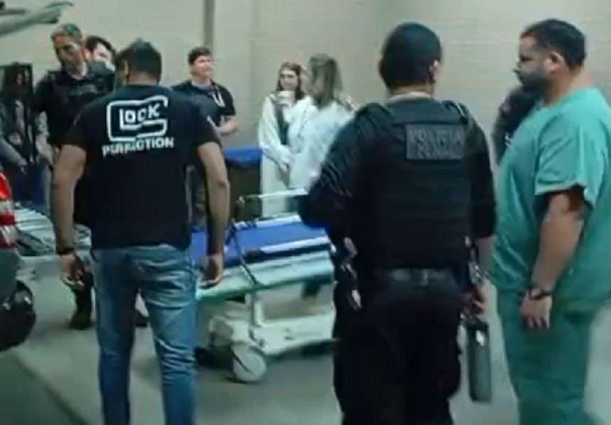 Um vídeo gravado por populares mostra dois camburões da polícia no hospital. Na gravação, é possível ver o detento saindo de um carro da Polícia Penal e sendo resgatado por médicos e enfermeiros.