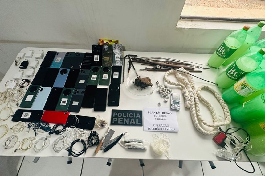 No Centro de Ressocialização de Várzea Grande, revistas realizadas nos Raios 03 e 05 terminaram com a apreensão de 27 celulares do tipo smartphone, nove carregadores, quatro fones de ouvido, além de 21 porções de entorpecentes e 12 garrafas de bebida artesanal.
