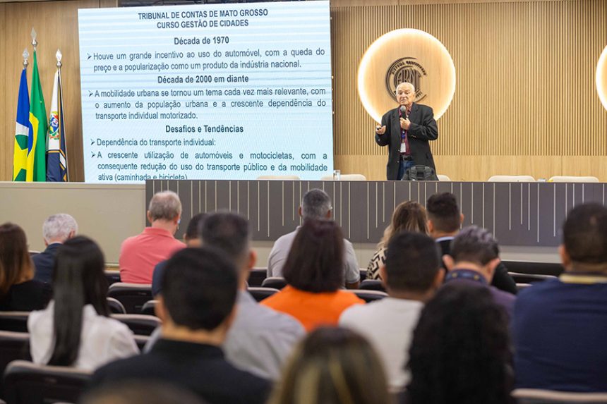 O Tribunal de Contas de Mato Grosso (TCE-MT) promoveu mais um passo rumo à construção de cidades mais inteligentes, inclusivas e ambientalmente responsáveis. O tema “Mobilidade Urbana Sustentável” foi o foco do segundo módulo do MBA em Gestão de Cidades, ministrado nesta sexta-feira (23) pelo professor Luiz Miguel de Miranda, no auditório da Escola Superior de Contas, com transmissão ao vivo pelo Canal do TCE-MT no YouTube e pela TV Contas (Canal 30.2).