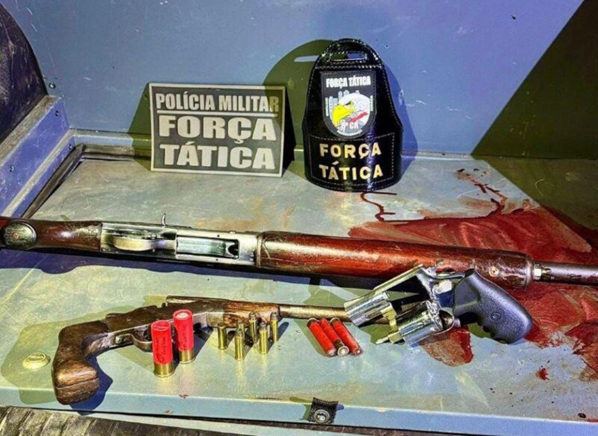 Com os bandidos, os policiais apreenderam duas espingardas e um revólver calibre 38.
