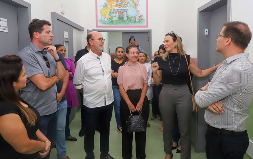 A prefeita de Várzea Grande, Flávia Moretti (PL), juntamente com a secretária de Saúde, Deisi Bocalon, receberam, no Pronto-Socorro e Hospital Municipal (PSHMVG), na tarde desta quinta-feira (6), a visita do Promotor de Justiça, Milton Matos, titular da 7ª Promotoria de Justiça Cível da Capital – Defesa da Cidadania (Saúde), do Promotor da 6ª Promotoria de Justiça Cível de Várzea Grande, Carlos Henrique Richter e do deputado Carlos Avalone.